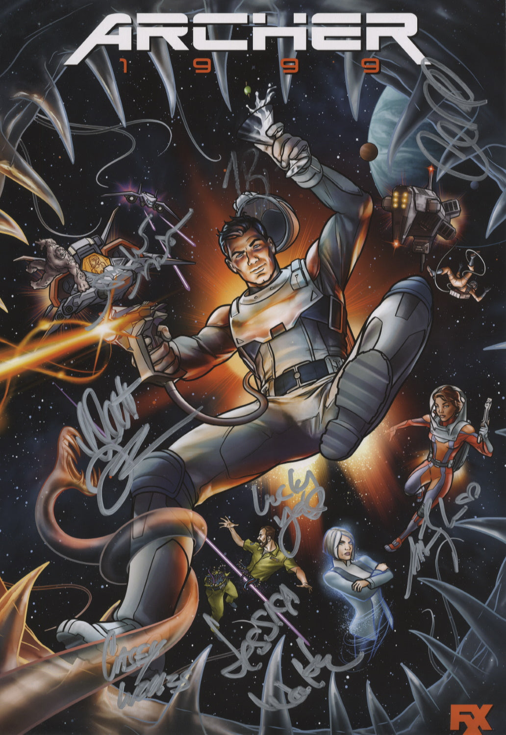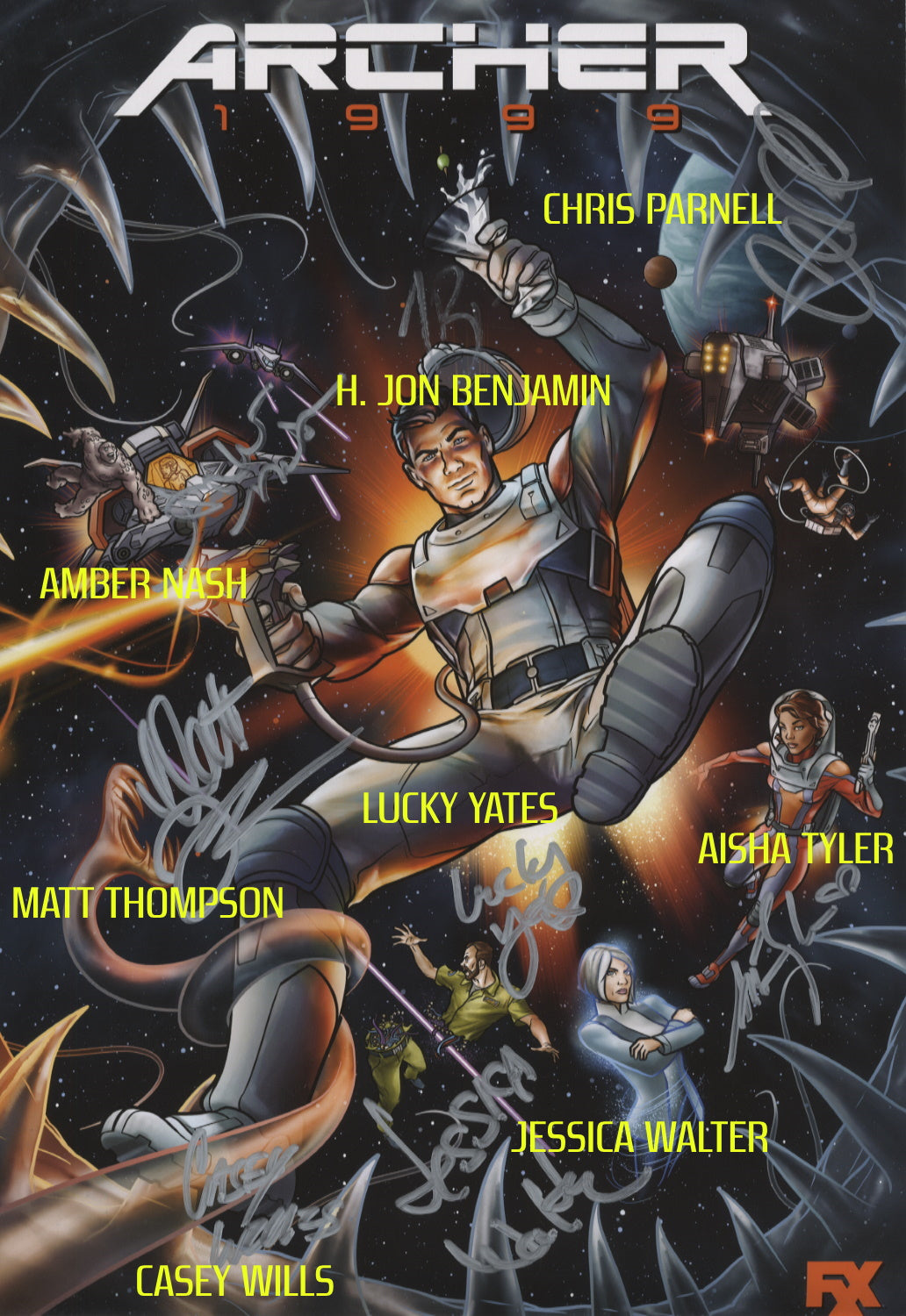 12"x 18" signed photo, Signed by: H. Jon Benjamin, Chris Parnell, Amber Nash, Lucky Yates, Aisha Tyler, Matt Thompson, Casey Wills and Jessica Walter.