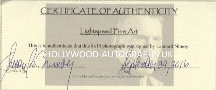 8" x 10" Signed Photo. A rare autograph of the late Mr. Nimoy.